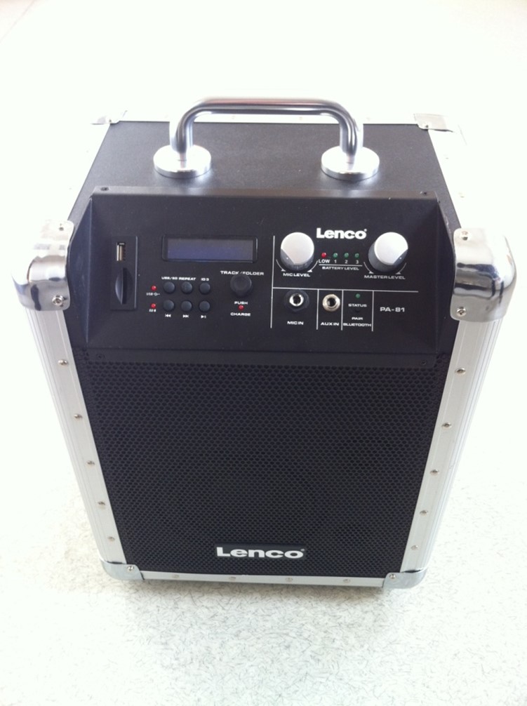 Description: Lenco PA-81 is a 70 watts (RMS) output power portable audio system with an integrated rechargeable battery.